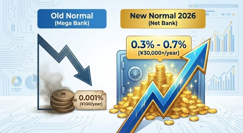 しかし、2026年現在、私たちの目の前にある光景は一変しました。日銀による断続的な利上げを経て、日本は「金利のある世界」へと完全に移行したのです。かつての常識を捨て、戦略的に銀行を選ぶことで、リスクゼロで着実に資産を増やせるフェーズが到来しています。