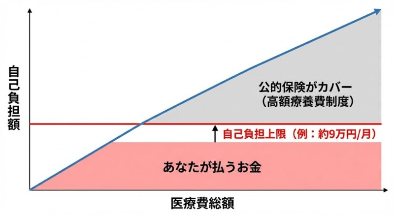一般的な所得(年収約370万〜770万円)の会社員であれば、1ヶ月にどれだけ高度な手術や入院をしても、自己負担の上限は約9万円程度です。さらに、大企業の健康保険組合であれば「付加給付」により、実質的な上限が2万円〜2.5万円に抑えられているケースも少なくありません。