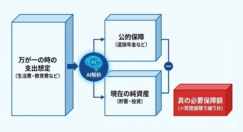 多くの人は「万が一の時の支出想定」だけを見て保険料を決めていますが、SEの視点では「公的保障」と「現在の純資産」という差し引き項目(マイナス要素)をいかに正確に定義するかが、最適化の鍵となります。