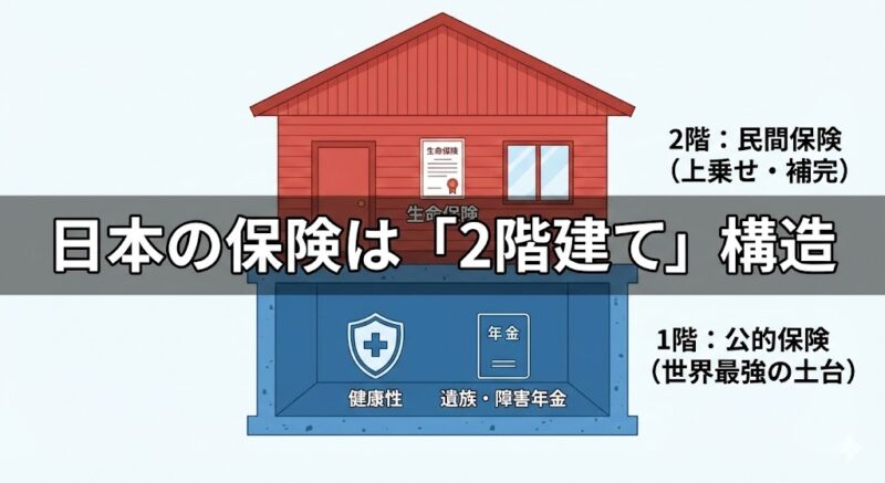 これらの「すでにある資産」を計算に入れず、ゼロベースで民間保険を組むのは、「すでに一軒家を持っているのに、予備でもう一軒家を買う」ようなものです。